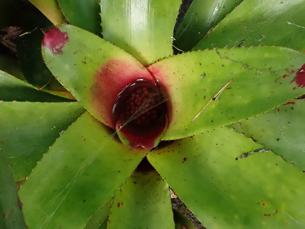 A large, colorful bromeliad species known for its striking rosette foliage and bright coloration.