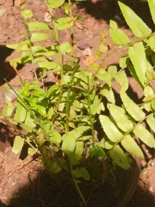 Nephrolepis brownii is a species of fern native to Asia, commonly known as the Asian sword fern. It is a perennial herb that can grow up to about 3 feet tall.