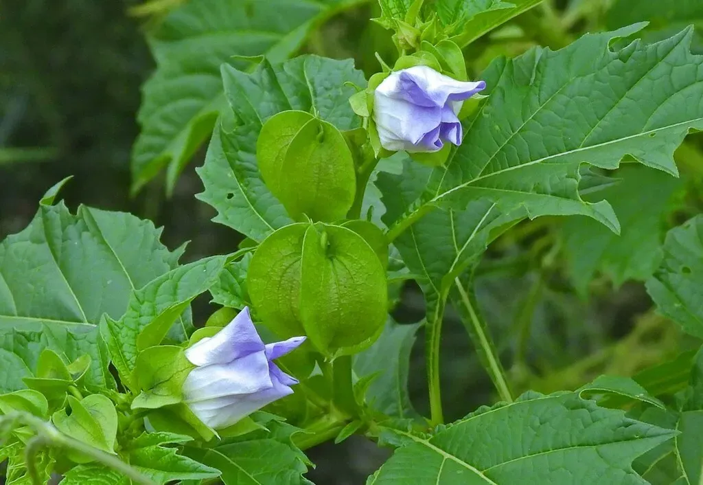 Nicandra physalodes is an annual, summer-blooming flowering plant native to Peru, known for its attractive bell-shaped flowers and papery fruit.