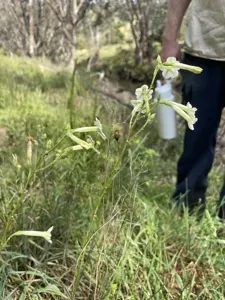 Australian Tobacco (Nicotiana Suaveolens) is a annual or short-lived perennial herb in the Solanaceae family with moderate care difficulty. It requires moderate watering and full sun or partial shade light in USDA hardiness zones 9-11. This plant is toxic to cats and dogs — keep it out of reach of pets.