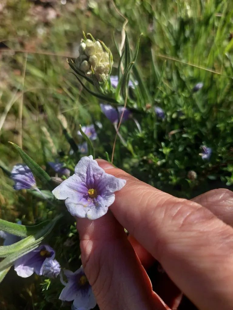Nierembergia linariifolia is a tender perennial often grown as an annual, known for its delicate, cup-shaped flowers and narrow leaves.
