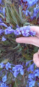 Nivenia stokoei is a rare, tuberous evergreen shrub native to the southwestern Cape Province of South Africa, known for its striking blue to purple flowers.