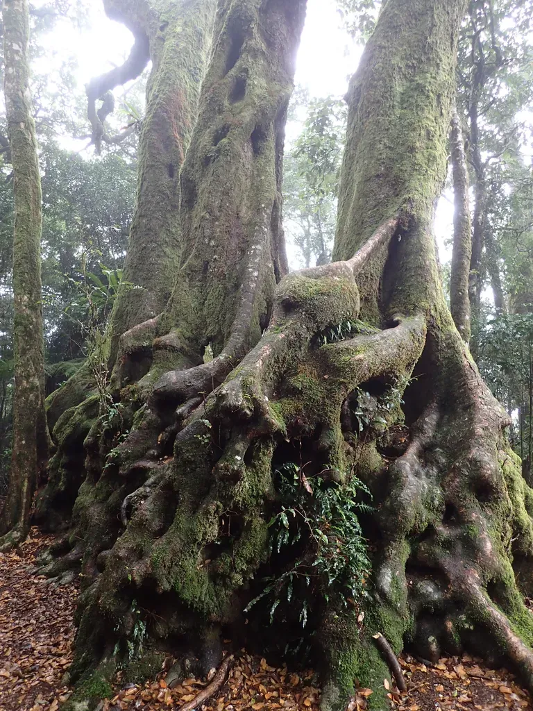 Nothofagus moorei is a large evergreen tree native to cool temperate rainforests of eastern Australia, known for its massive trunk and longevity.