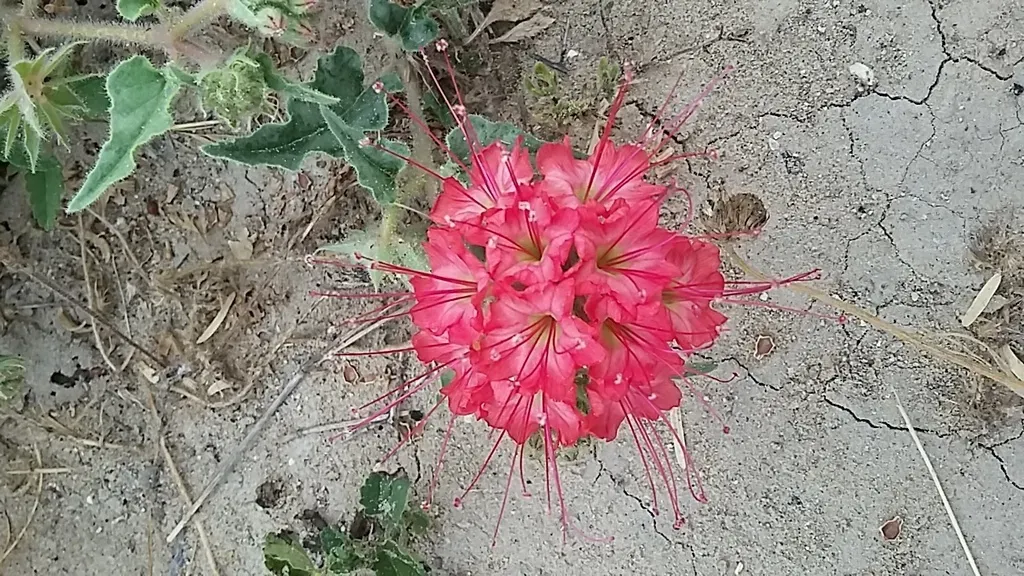 Nyctaginia capitata, commonly known as Devil's bouquet, is a low, sprawling annual plant with sticky, gray-green fleshy foliage and showy red flowers.