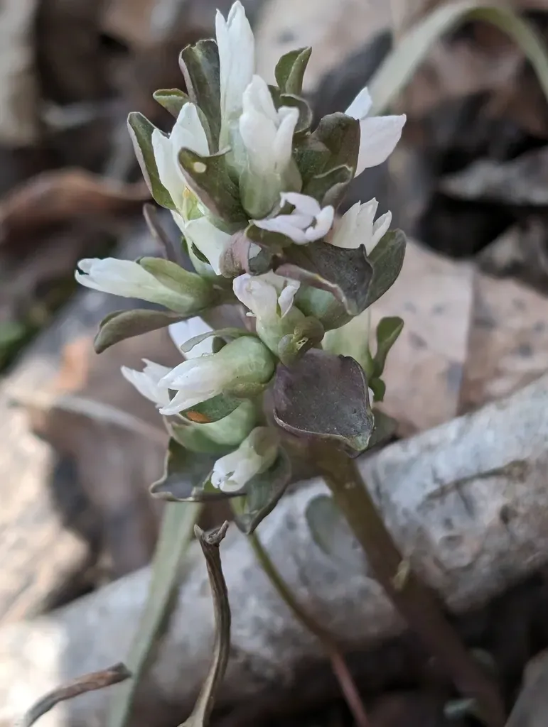 Obolaria virginica is a low-growing perennial herb native to the southeastern United States, known for its small, fleshy leaves and dull white or purplish flowers.