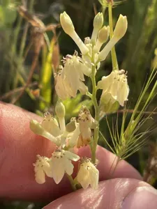 Odontostomum hartwegii is a perennial herb endemic to northern California, growing from a corm and producing white or yellowish flowers.
