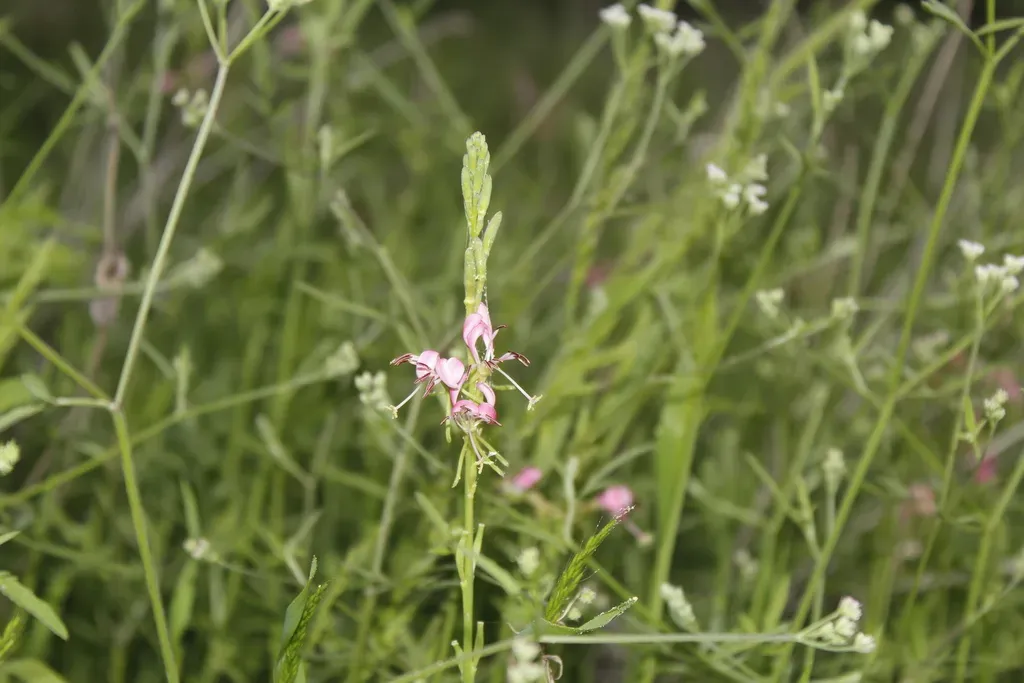 Roadside Gaura (Oenothera Suffulta) is a perennial herb in the Onagraceae family with easy care difficulty. It requires moderate watering and full sun light in USDA hardiness zones 5-9. This plant is safe for cats and dogs.