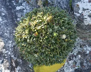 Rock Cushionbush (Oldenburgia Paradoxa) is a plant in the Asteraceae family with moderate care difficulty. It requires moderate watering and moderate light.