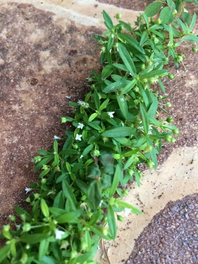 Oldenlandia corymbosa is an annual herbaceous plant in the Rubiaceae family, known for its mat-forming growth and small white flowers.