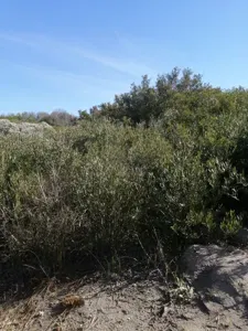 Olea exasperata is a shrub or small tree native to South Africa, notable for its warty branchlets and evergreen foliage.