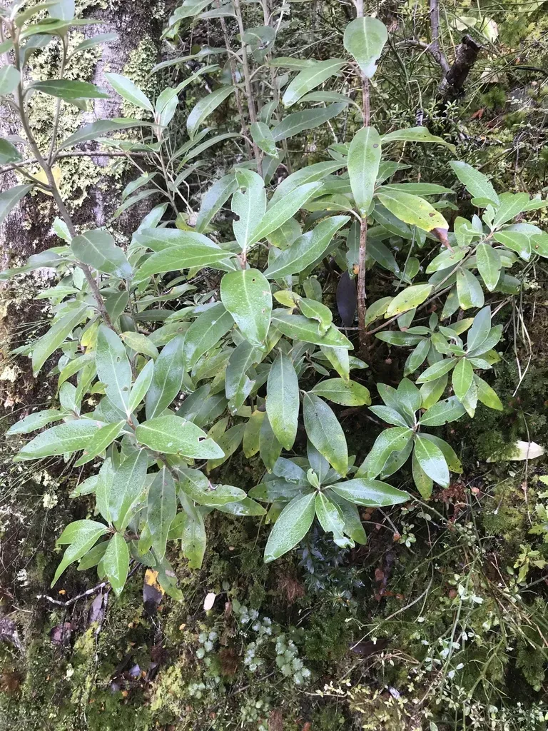 Olearia avicenniifolia is an evergreen shrub or small tree native to New Zealand, known for its leathery narrow pointed dark green glossy leaves and clusters of white daisy-like flowers.