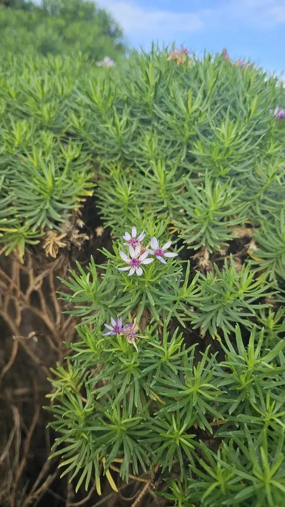 Sticky Daisy-bush (Olearia Glutinosa) is a perennial shrub in the Asteraceae family with easy care difficulty. It requires moderate watering and full sun or partial shade light in USDA hardiness zones 9-11. This plant is safe for cats and dogs.