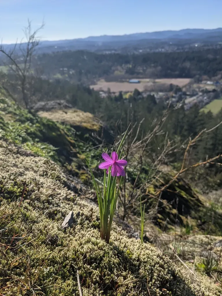 Olsynium douglasii is a perennial flowering plant in the iris family, known for its brilliant reddish-purple flowers and narrow, sword-like leaves.