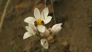 Olsynium junceum is a perennial alpine plant with pink star-shaped flowers, native to South America.