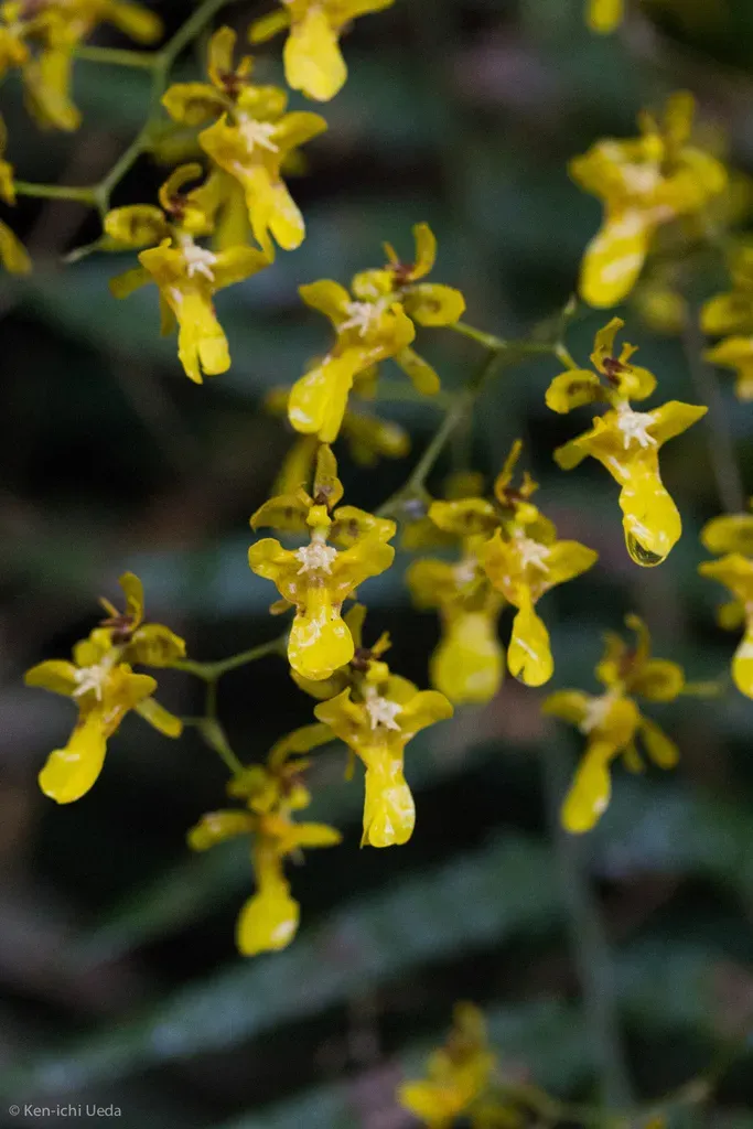 Oncidium ornithorhynchum is a species of orchid known for its slender pseudobulbs and arching sprays of small flowers with a distinctive lip resembling a bird's beak.