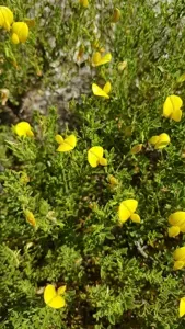 Bush Restharrow (Ononis Ramosissima) is a perennial shrub in the Fabaceae family with easy care difficulty. It requires moderate watering and full sun or partial shade light in USDA hardiness zones 7-10. This plant is safe for cats and dogs.