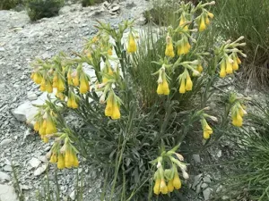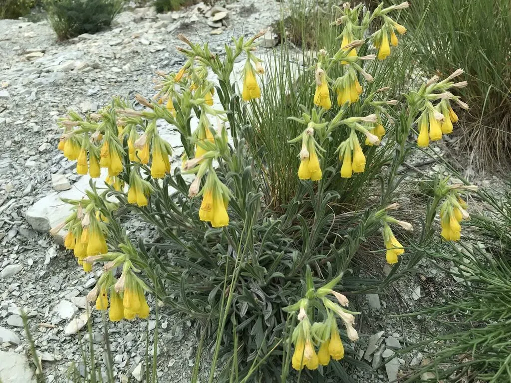 Onosma taurica is a perennial herbaceous plant known for its pale cream-to-yellow tubular, nodding flowers.