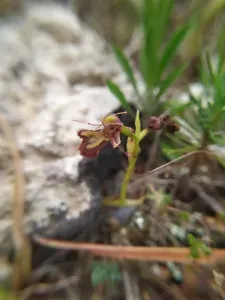 Ophrys speculum, commonly known as the Mirror Orchid, is a Mediterranean orchid species notable for its distinctive reflective flower lip that mimics the appearance of a female bee to attract pollinators.