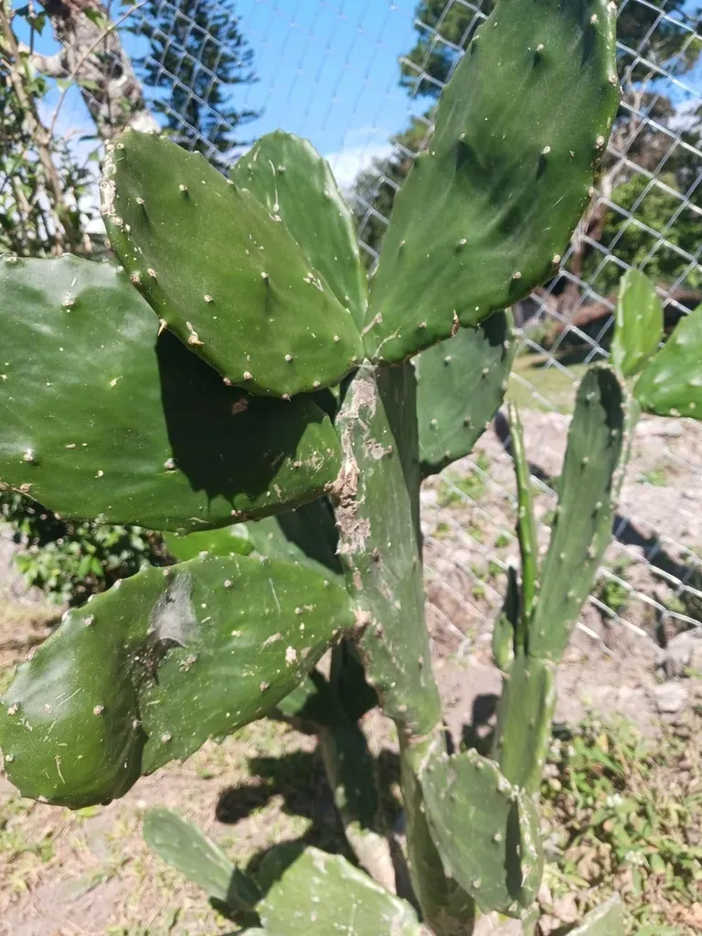 Opuntia karwinskiana is a spiny, evergreen, succulent shrub or tree-like cactus growing between 2 to 7 meters tall, with a distinct trunk and much-branched flat, rounded shoots.