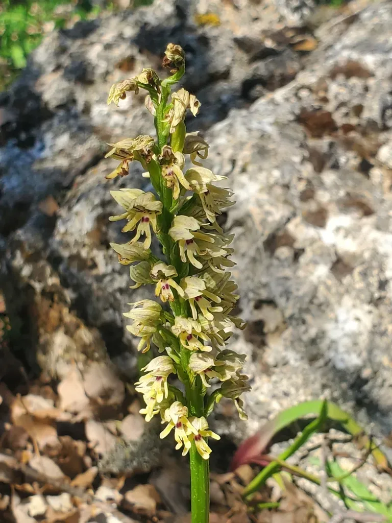 Galilee Orchid (Orchis Galilaea) is a perennial herb in the Orchidaceae family with moderate care difficulty. It requires moderate watering and partial shade or dappled_shade light in USDA hardiness zones 8-10. This plant is safe for cats and dogs.