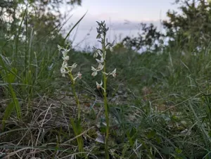 Orchis provincialis, commonly known as the Provence orchid, is a tuberous perennial orchid characterized by its yellow flowers and spotted basal leaves.