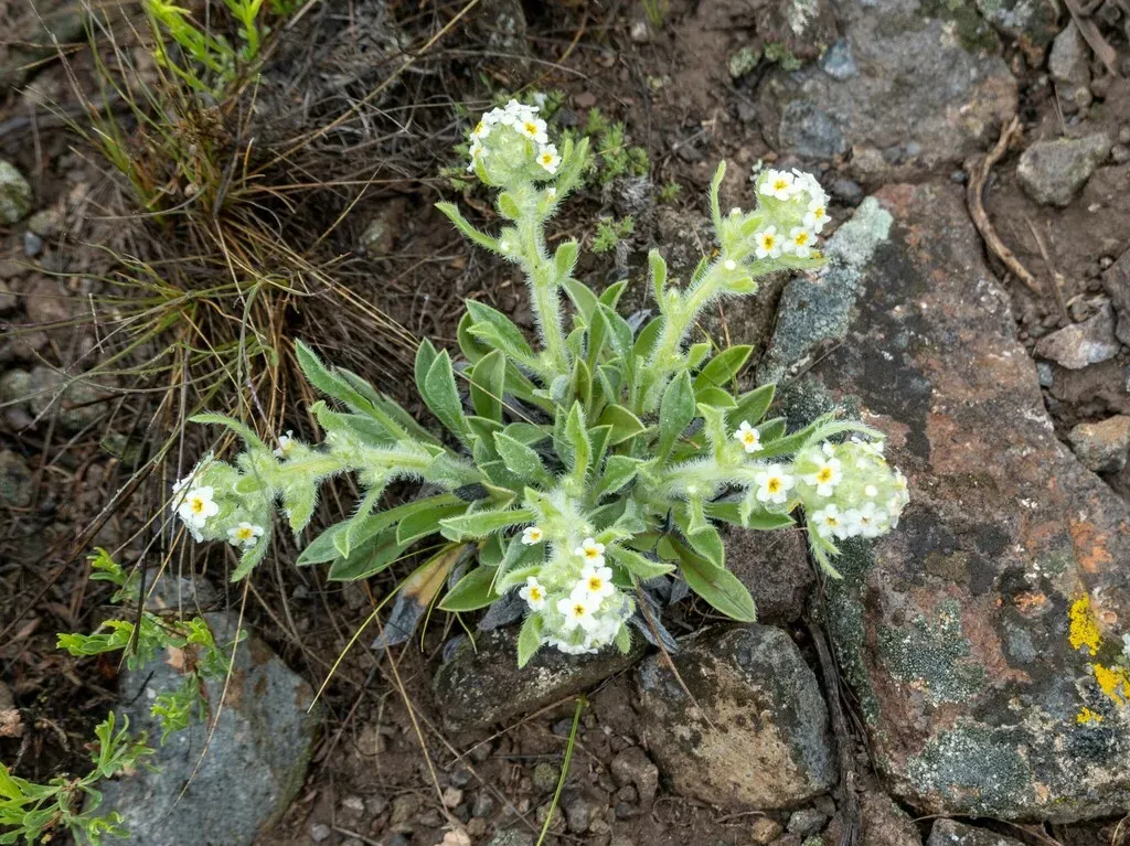Roughseed Cryptantha (Oreocarya Flavoculata) is a perennial herb in the Boraginaceae family with easy care difficulty. It requires low watering and full sun or partial shade light in USDA hardiness zones 4-9. This plant is safe for cats and dogs.