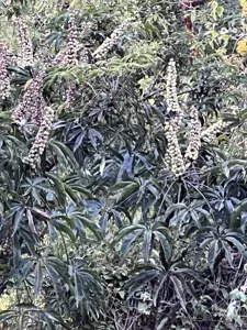 Oreopanax xalapensis is an evergreen shrub or small tree native to Mexico and Central America, known for its palmate leaves and purple-flushed stems.