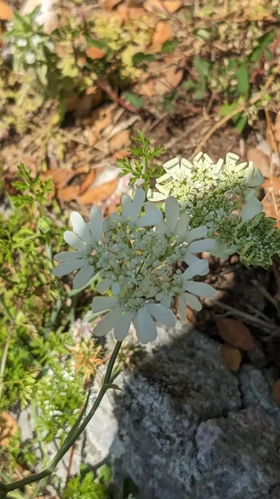 Orlaya grandiflora, commonly known as White Lace Flower, is a hardy annual plant with delicate, lace-like white flowers.