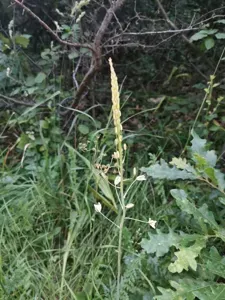 Ornithogalum pyramidale is a bulbous perennial plant known for its pyramidal racemes of star-shaped white flowers with green-striped backs, blooming in early summer.