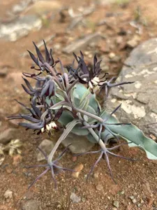 Ornithoglossum vulgare is a perennial herbaceous plant growing from a corm, characterized by blueish to grey-green, boat-shaped leaves and an attractive flower structure.