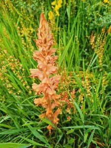Orobanche rapum-genistae, known as greater broomrape, is a parasitic plant species native to Europe, typically found in scrubby grassland habitats.