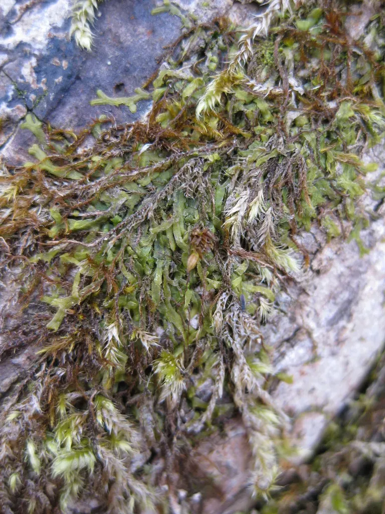 Orthotrichum diaphanum is a moss species characterized by its small size, typically growing 2-7 mm high, with light to dark green or brownish coloration, often forming tufts or scattered among other mosses.