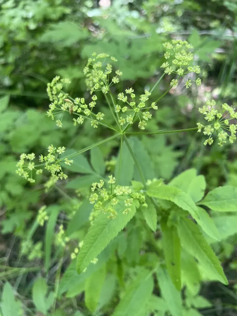 Western Sweet Cicely (Osmorhiza Occidentalis) is a perennial herb in the Apiaceae family with moderate care difficulty. It requires moderate watering and partial shade or dappled_shade light in USDA hardiness zones 5-8. This plant is safe for cats and dogs.