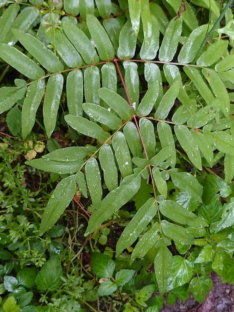 A deciduous fern native to East Asia with separate fertile and sterile fronds, growing up to 1 meter tall.