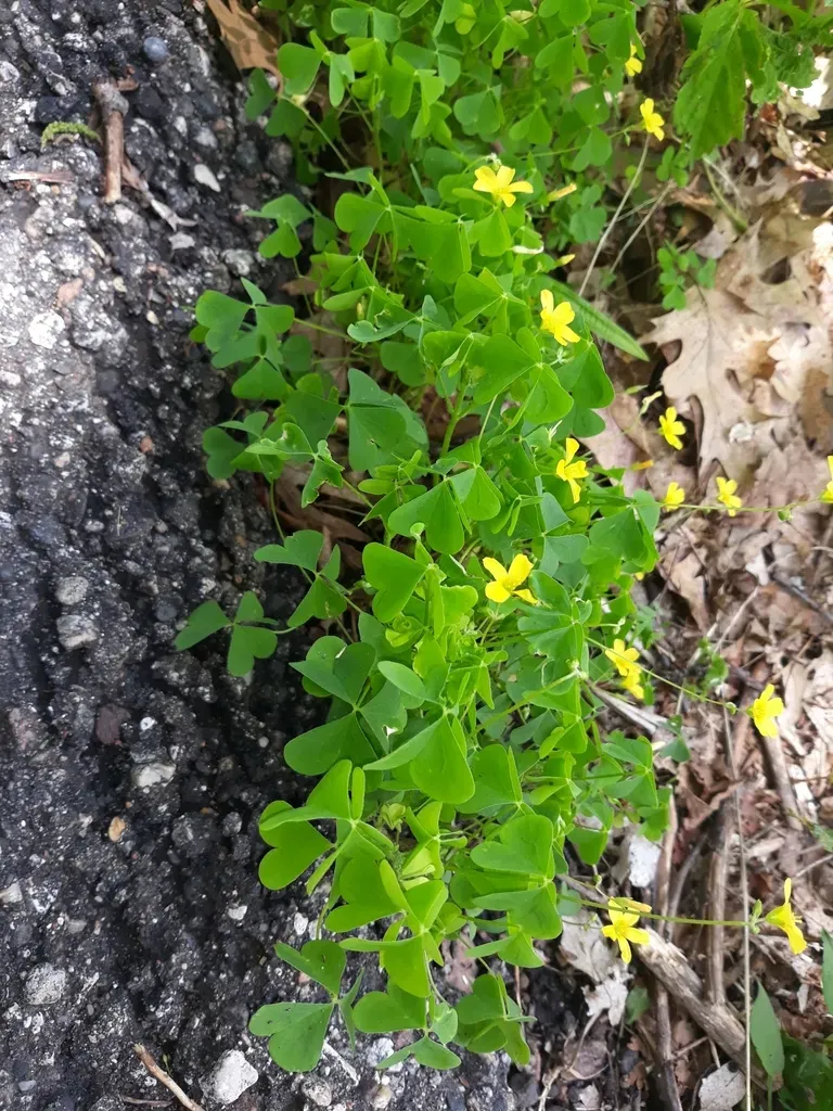 Oxalis stricta is a herbaceous flowering plant with trifoliate leaves and bright yellow flowers, commonly found in disturbed areas.