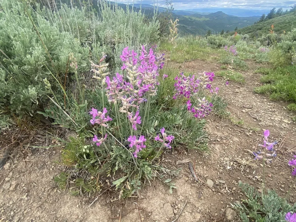 Oxytropis lambertii is a perennial herb native to North American prairies, known for its showy purple flowers and silvery hairy foliage.