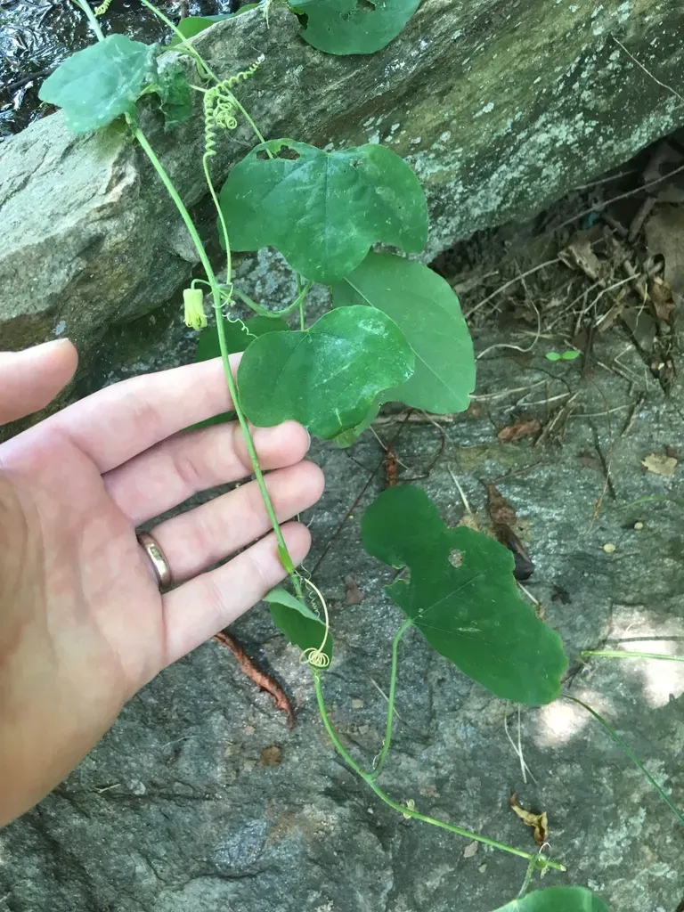 A native climbing or trailing vine with small yellow-green flowers and lobed leaves.