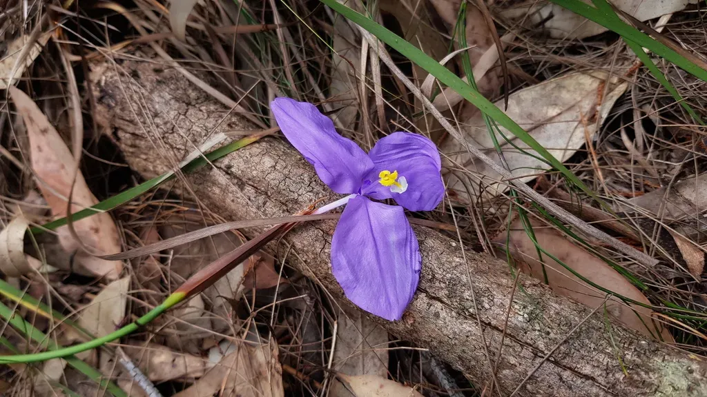 Patersonia glabrata is an erect, tufted, perennial herb with grass-like leaves and striking violet-purple flowers.