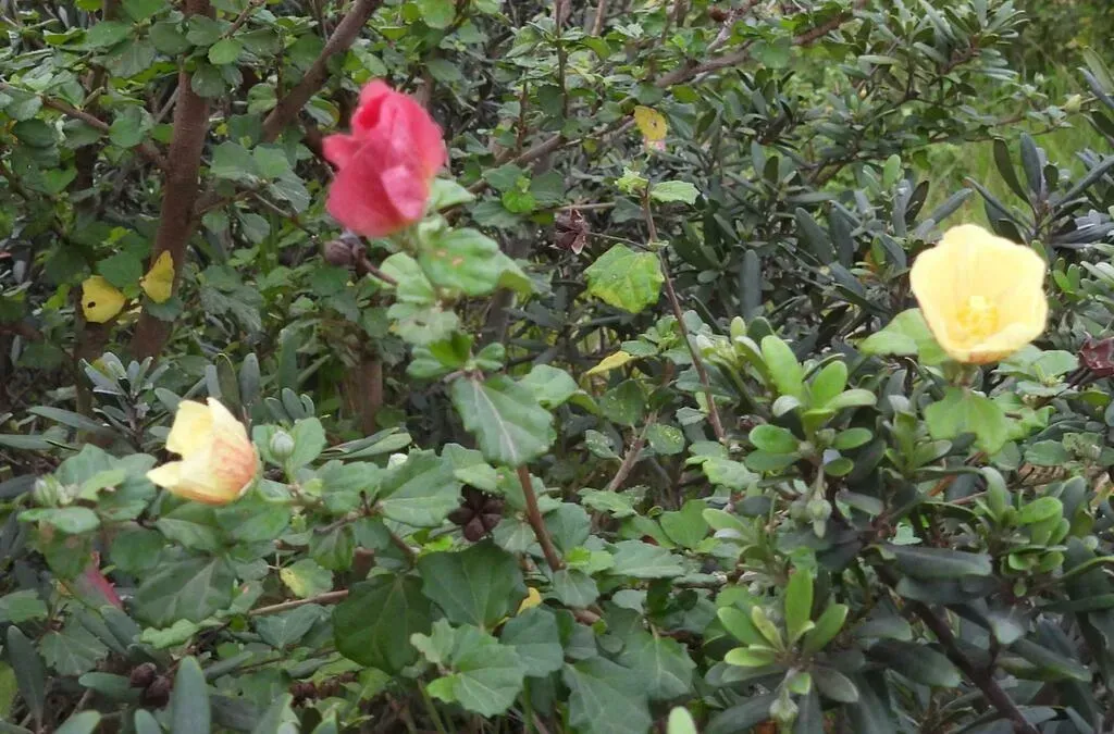 Pavonia praemorsa is a hardy, medium-sized evergreen shrub native to South Africa, known for its glossy, round leaves and butter-yellow hibiscus-like flowers.