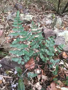Pellaea atropurpurea is a small fern known for its distinctive purple stems and preference for rocky, alkaline habitats.
