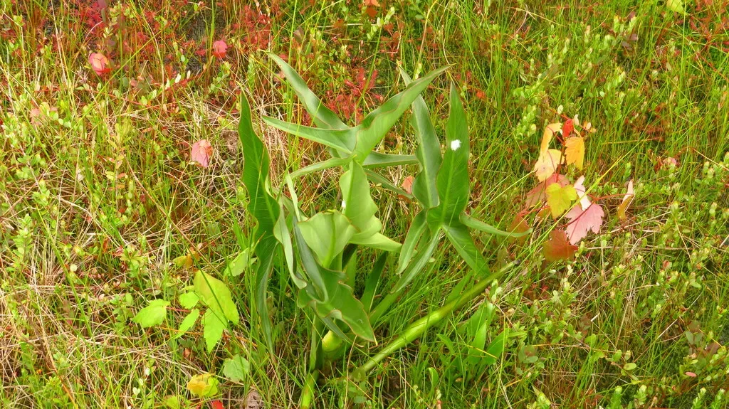 Peltandra virginica is a perennial aquatic plant native to wetlands of eastern North America, known for its arrow-shaped leaves and tolerance to wet soils.
