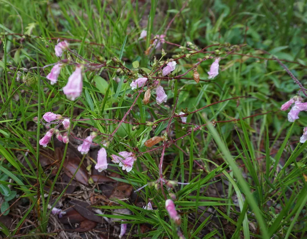 Penstemon australis is a perennial herbaceous plant native to the southeastern United States, known for its attractive tubular flowers that bloom in various shades of white and pink.