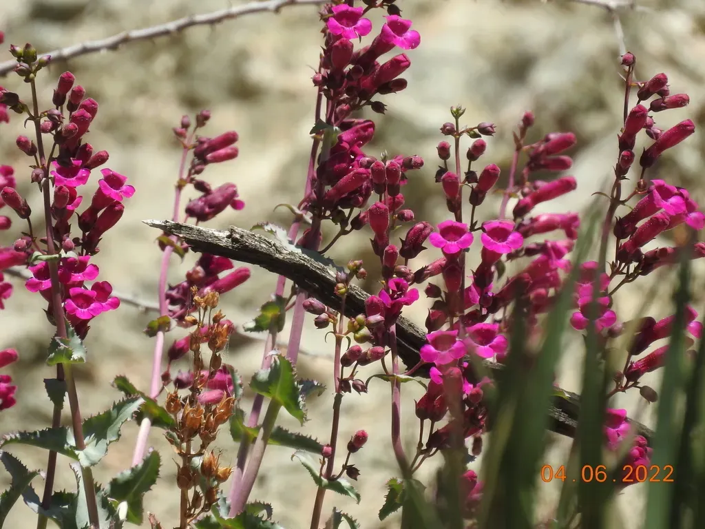 Penstemon clevelandii is a perennial herb or shrub native to southern California and Baja California, known for its tubular pink to crimson flowers and gray-green to dark-green foliage.