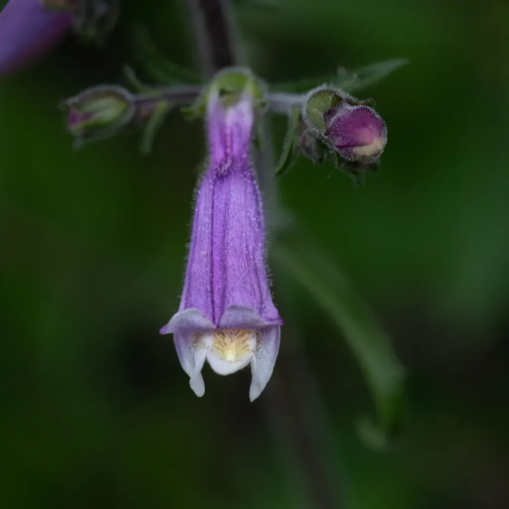 Penstemon hirsutus is a perennial herbaceous plant known for its hairy stems and clusters of tubular lavender to violet flowers with whitish lips.