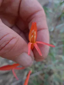 Penstemon labrosus is a perennial herb native to California and parts of western North America, known for its erect habit and striking red flowers.