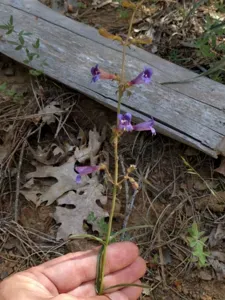 Penstemon roezlii is a perennial herb native to California and parts of western North America, characterized by its erect growth, hairy stems, and blue to purple tubular flowers.