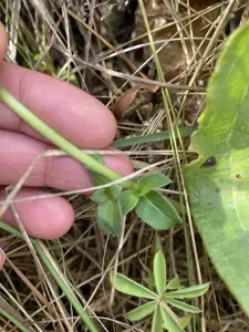 Pentanisia prunelloides is an erect perennial herb with stout hairy stems and bright blue flowers, native to southern Africa.