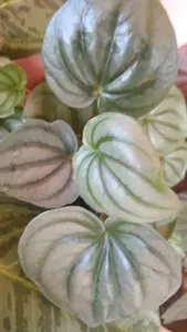 Peperomia argyreia is a compact, nearly stemless, rosette-forming perennial known for its striking foliage resembling watermelon rind.
