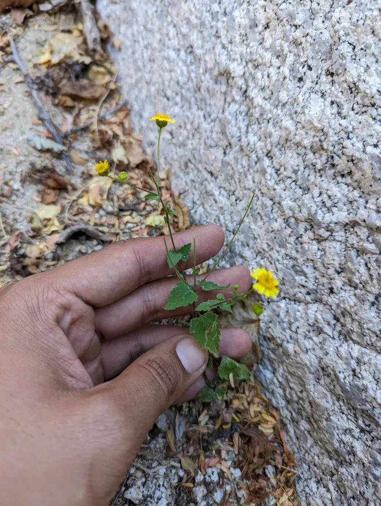 Perityle cuneata is a perennial herb native to South America and the southwestern United States, characterized by woody stems, lance-shaped leaves, and bright yellow flowers.