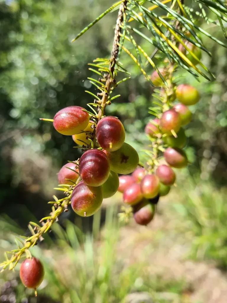 Persoonia pinifolia is a large evergreen shrub native to Australia, known for its distinctive needle-like leaves and attractive yellow flowers.